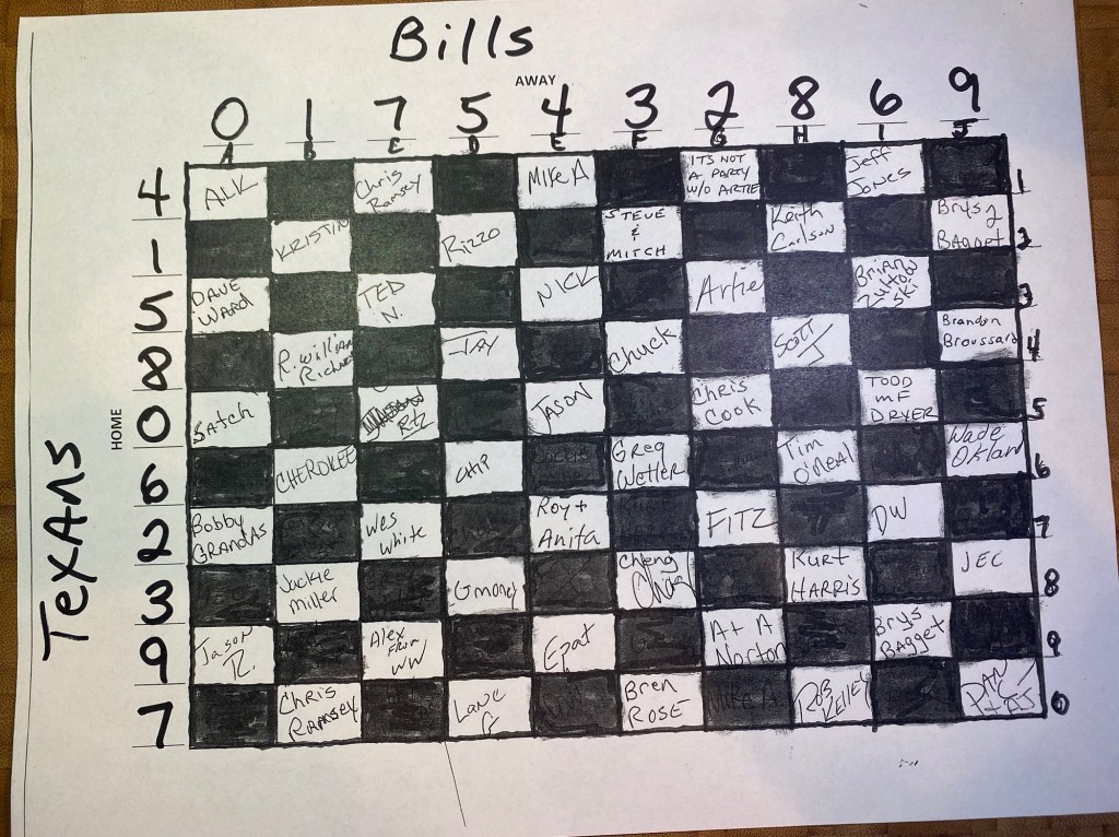 Bills 20 vs. Texans 23 – Another rollover! 5 boxes of ziti in play next week.