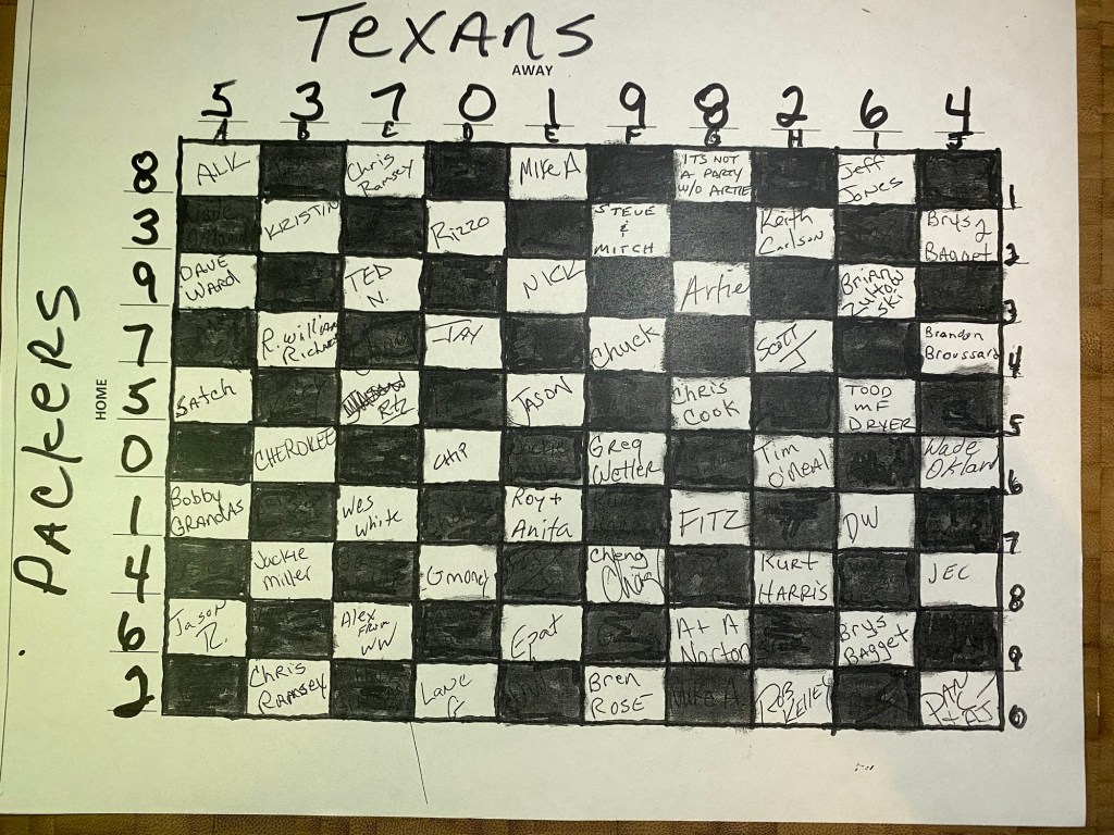 Texans 22 vs. Packers 24 – we have a winner – 1 box of ziti