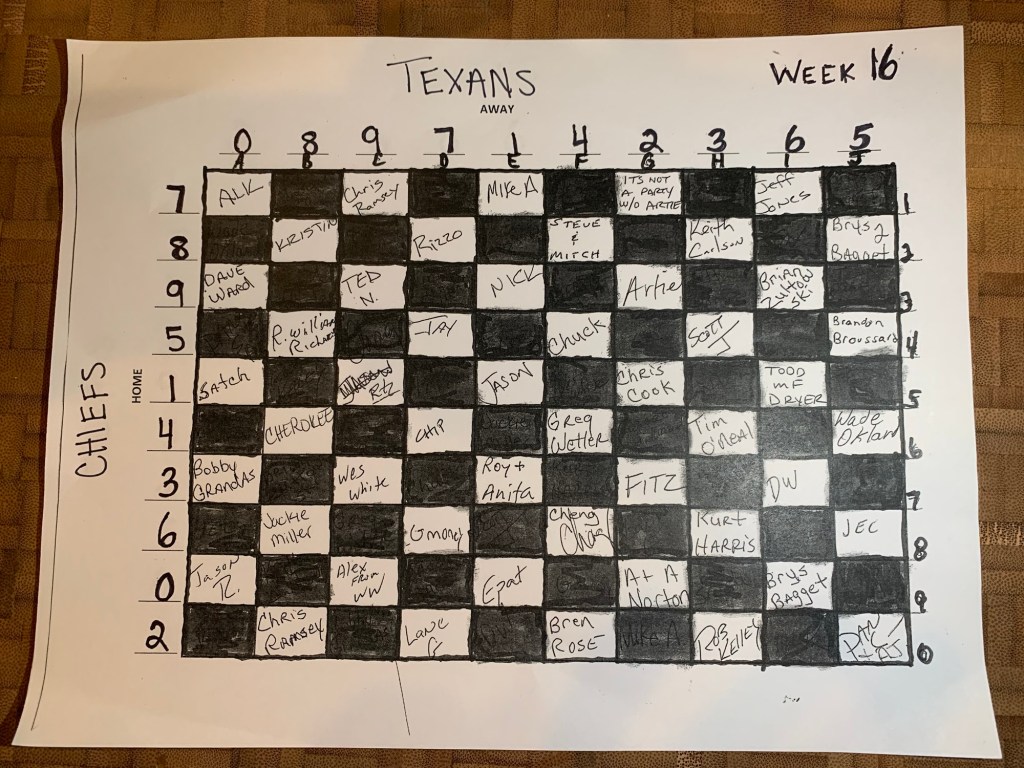 Texans 19 vs. Chiefs 27 – we have a winner for 1 box of ziti