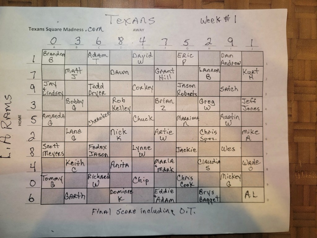 Rams 14 – Texans 9 — No winner for Week1 – we have a rollover!